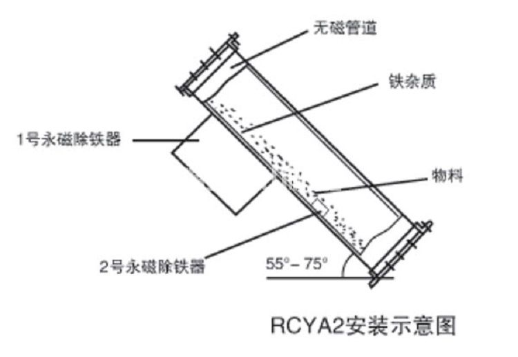 RCYA系列管道式永磁除鐵器是由無磁管道和永磁除鐵器兩部分組成,該管道式除鐵器使用性能較強的磁材料組成復合磁系。管道式除鐵器適合于無輸送膠帶、下料溜槽、升降機進出料口等場合的除鐵。工作時散狀物料進入無磁管道經(jīng)過除鐵時,夾雜在散狀物料中的鐵磁性物質(zhì)被除鐵器吸附,除去鐵磁性物質(zhì)時,打開除鐵器密封門就可。管道式除鐵器主要應用于水泥、化工、煤炭、塑料、耐火材料、建材等行業(yè)。